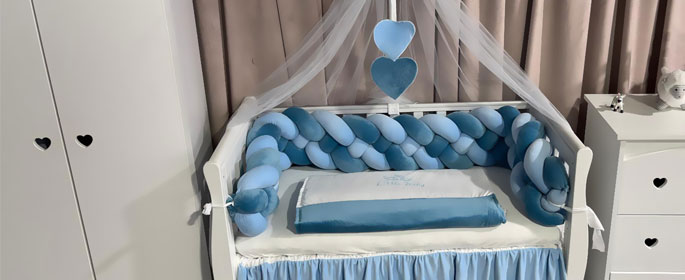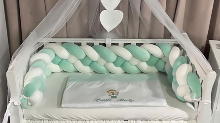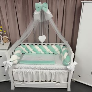 Lenjerie de patut 11 piese din catifea model Impletit Premium PeppiBambini, personalizabila