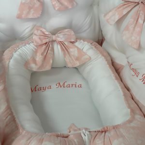 Baby Nest Brodat PeppiBambini – Cuib moale pentru bebeluși din bumbac 100% natural, pentru confort și siguranță zilnică