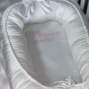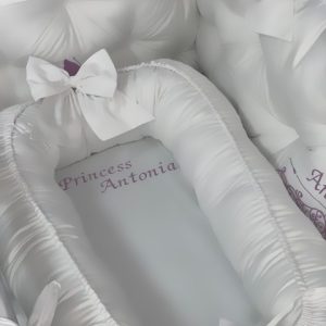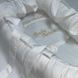 Baby Nest Brodat PeppiBambini – Cuib moale și elegant din bumbac natural, ideal pentru siguranța și confortul bebelușului