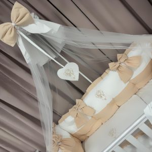 Set complet 11 piese pentru pătuț – model Regal din catifea bej, personalizabil – Peppi Bambini Premium Collection