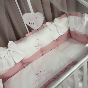 Lenjerie pătuț personalizată 11 piese cu laterale împletite Catifea Pink PeppiBambini – set premium pentru bebeluși, brodat și ultra-moale