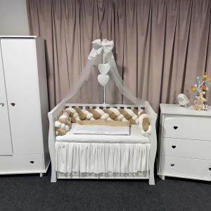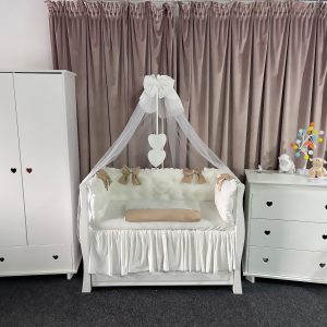 Set complet 11 piese pentru pătuț – model Royal White Beige din catifea alb-bej, personalizabil cu nume – Peppi Bambini Premium Collection