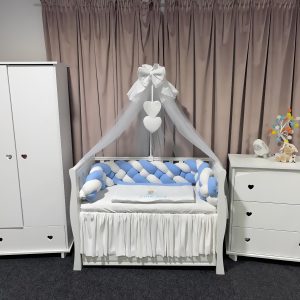 Transformă pătuțul bebelușului într-un spațiu elegant, sigur și plin de confort cu setul complet Catifea Blue cu laterale împletite PeppiBambini, realizat manual din catifea moale premium și bumbac 100% natural.Acest set de 11 piese oferă o combinație perfectă între design luxos, materiale sigure și protecție maximă pentru copilul tău. Modelul Catifea Blue se remarcă prin…
