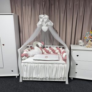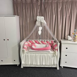 - Protecție împletită – apără bebelușul de lovituri accidentale, oferind o notă decorativă unică pătuțului;