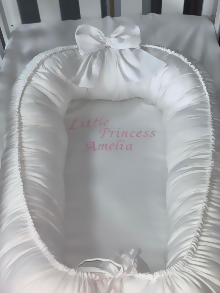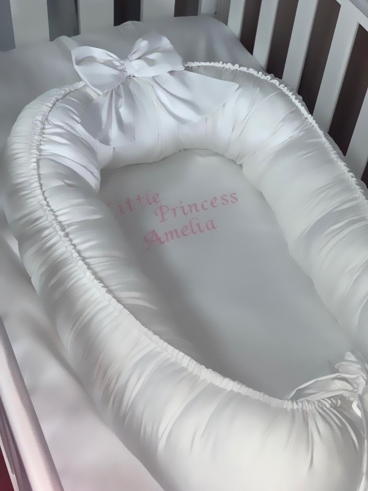 Alege Baby Nest Brodat PeppiBambini – un cuib moale, elegant și sigur, perfect pentru primele luni de viață ale bebelușului tău.