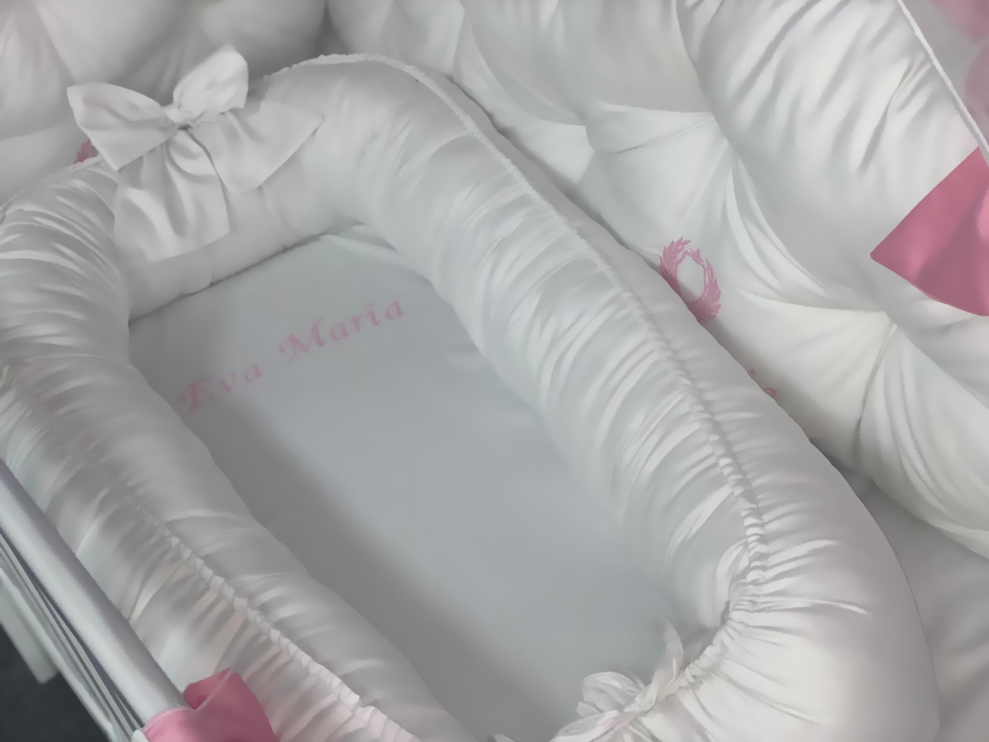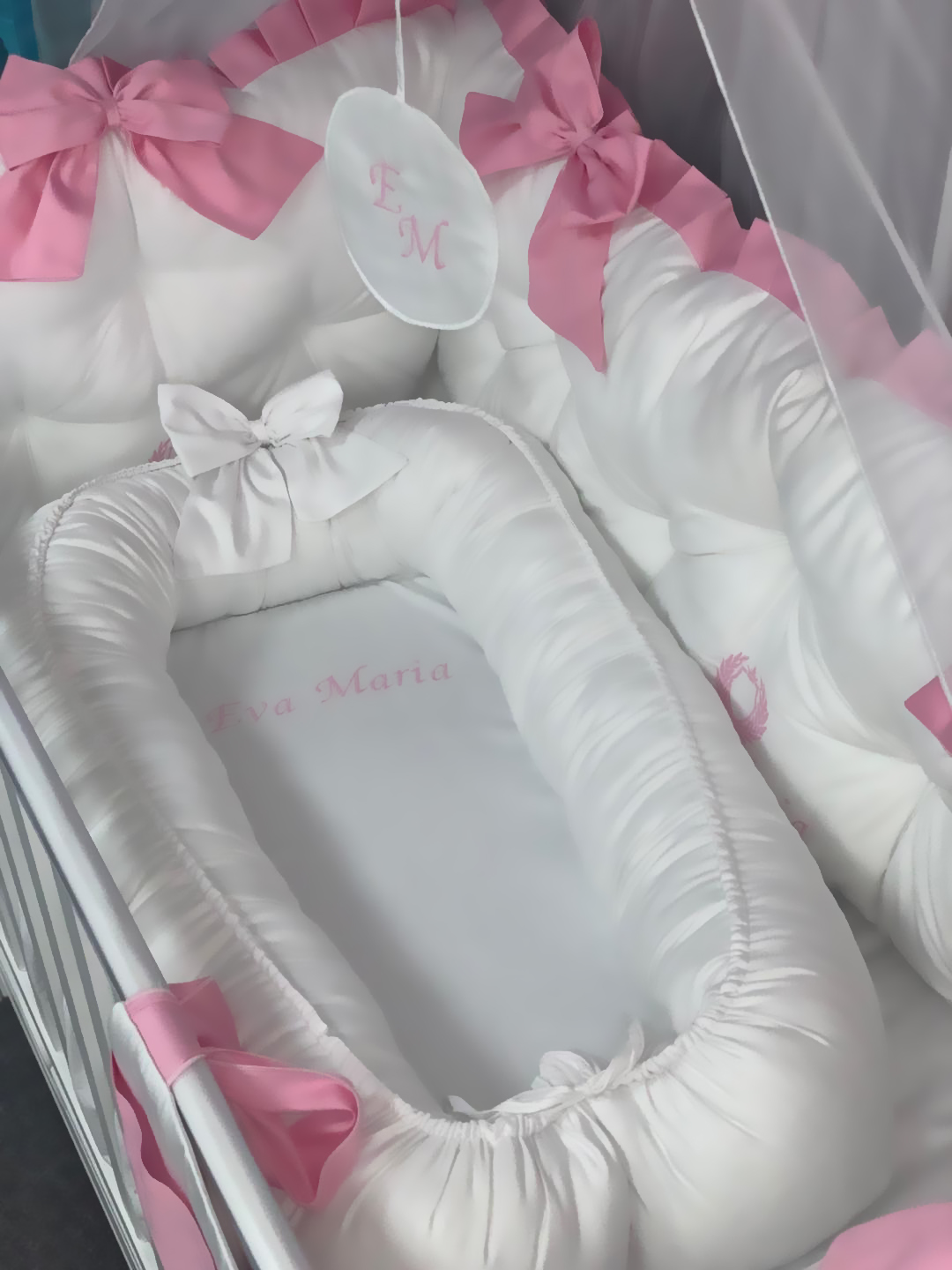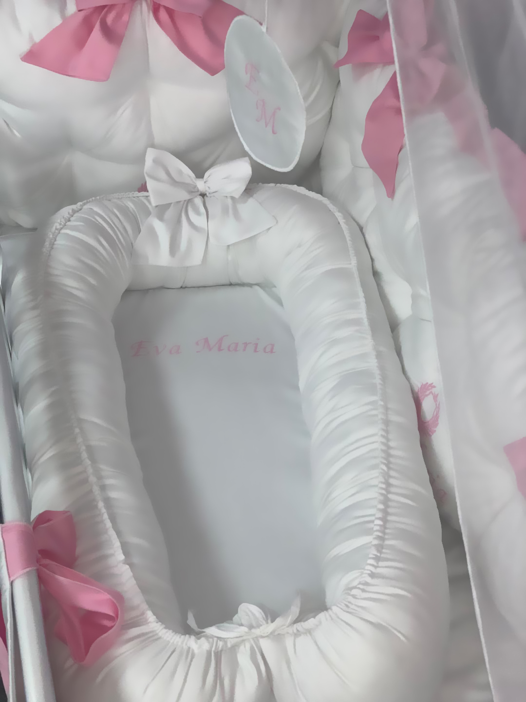 🤍 Designul Baby Nest Brodat PeppiBambini – siguranță și rafinament pentru primele luni