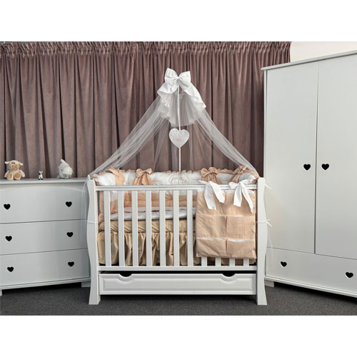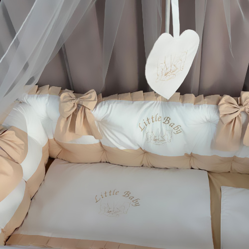 Este o lenjerie completă de pătuț pentru bebeluși, ce îmbină armonios confortul, siguranța și rafinamentul.