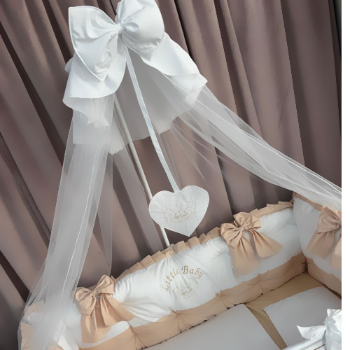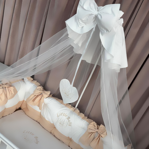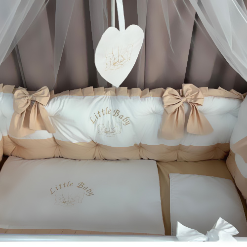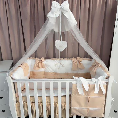 Protecție laterală completă (5 bucăți independente cu fundițe bej)