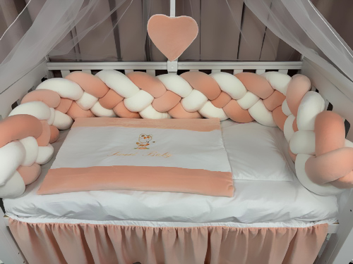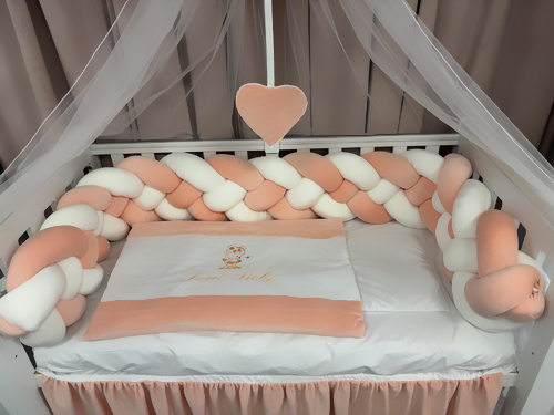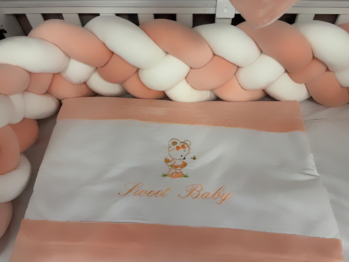 Lenjeria de pătuț PeppiBambini din catifea somon aduce echilibrul perfect între eleganță, calitate și siguranță.