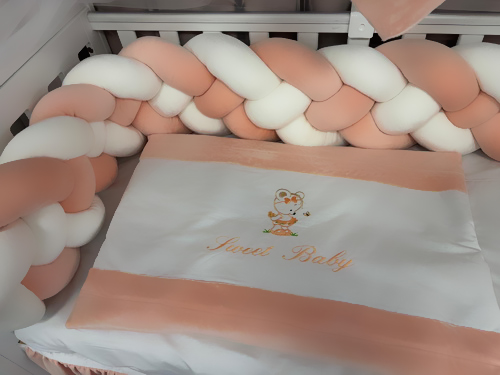 Catifeaua moale, plăcută la atingere, oferă un aer rafinat camerei, iar bumbacul 100% natural de pe interior asigură un somn liniștit, fără iritații. Lateralele împletite oferă protecție și un aspect unic, perfect pentru părinții care vor ceva mai mult decât o lenjerie clasică.