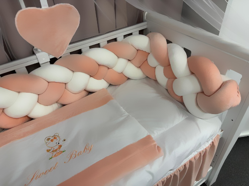 Laura M. – Brașov: „Lateralele împletite sunt geniale! Protejează bebelușul și dau un aspect minunat pătuțului. Calitate foarte bună.”