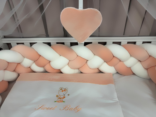 Lenjerie pătuț 11 piese catifea somon – model împletit PeppiBambini, premium,