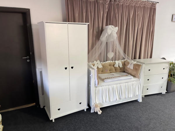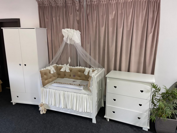 Modelul Regal Beige se remarcă prin eleganța sa naturală – tonurile calde de bej se îmbină armonios cu textura catifelei, oferind un decor sofisticat, perfect pentru orice cameră de bebeluș.