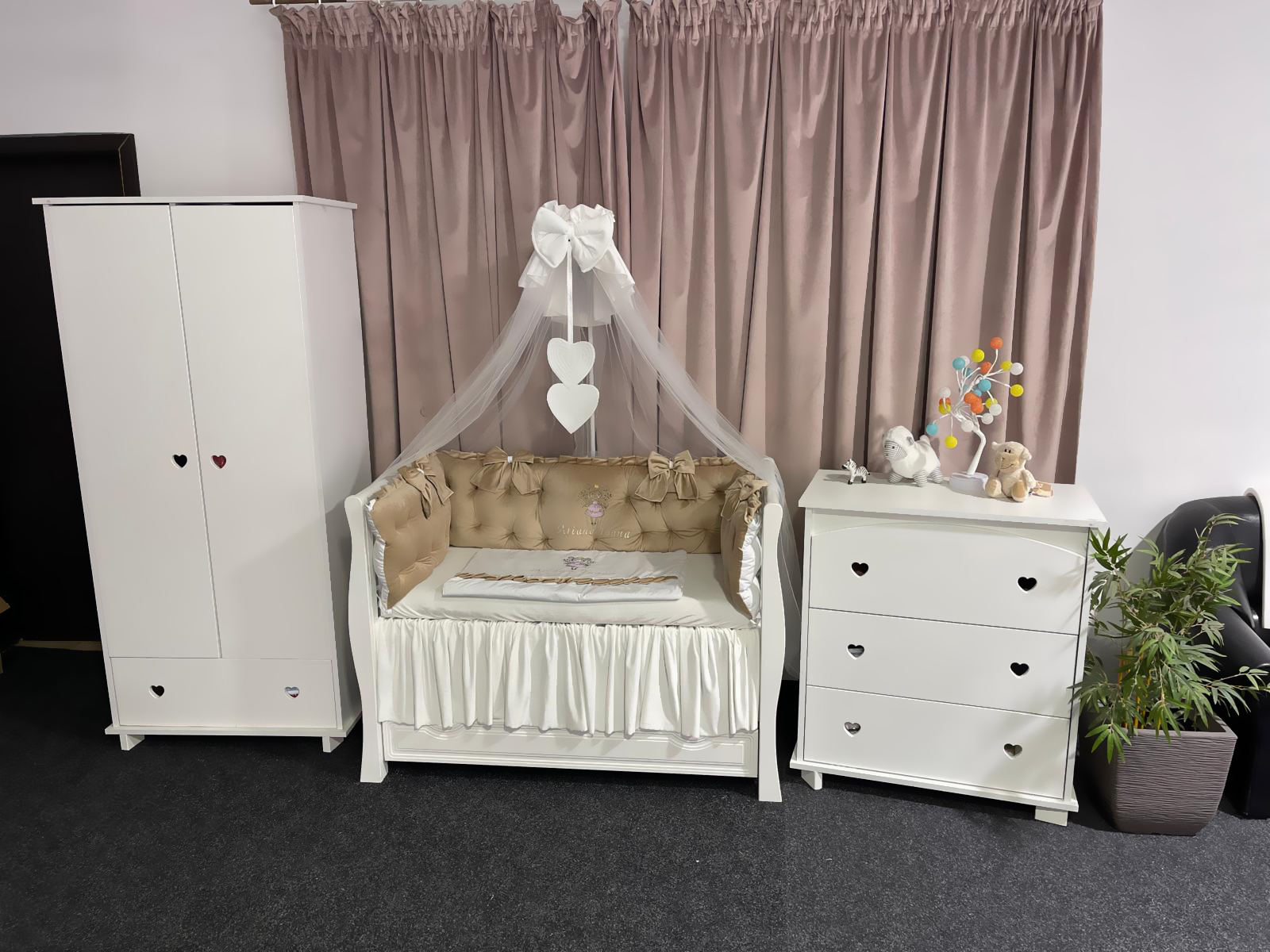 Nuanța caldă de bej catifelat adaugă rafinament și liniște camerei bebelușului, iar materialele de calitate premium oferă un somn sigur și plăcut.