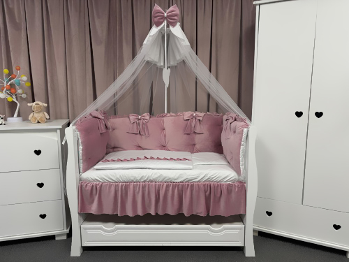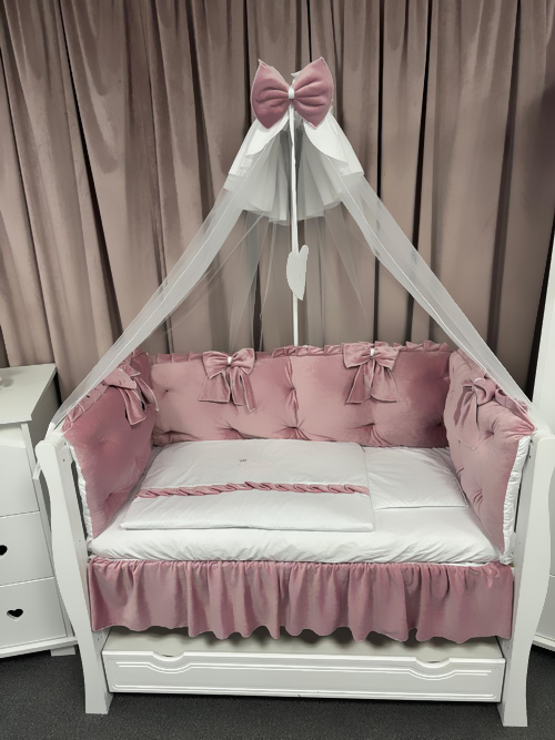 Lenjeria de pătuț Royal Catifea Pink PeppiBambini este alegerea perfectă pentru părinții care vor un produs complet, elegant și sigur.