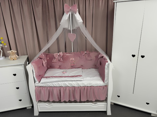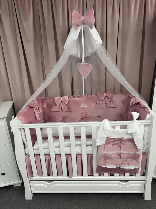 Lenjeria de pătuț Royal Catifea Pink PeppiBambini este combinația perfectă între eleganță, calitate și siguranță, creată pentru părinții care doresc un produs complet și de încredere.