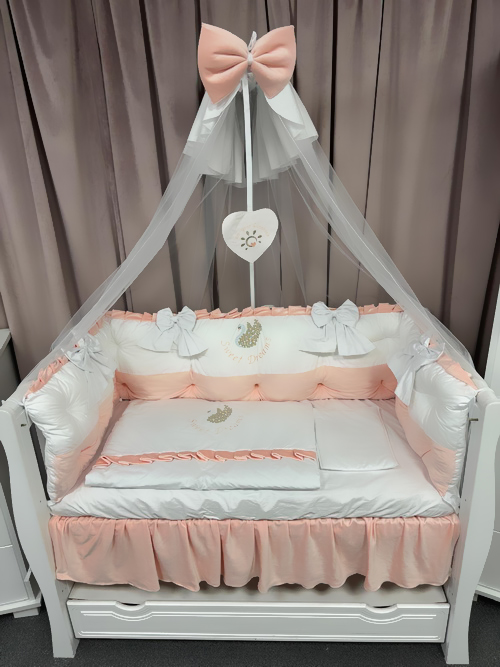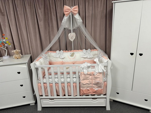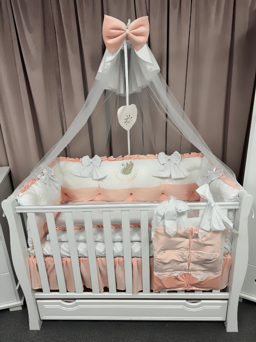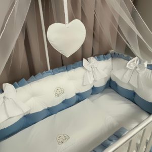 Fiecare set este realizat manual, cu atenție la fiecare detaliu, pentru a garanta siguranța și confortul bebelușului.