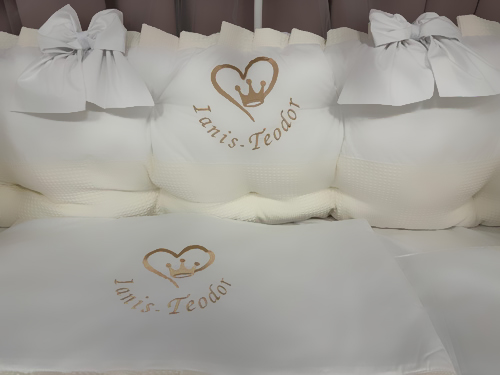 💖 Personalizare gratuită: numele copilului poate fi brodat manual pe pernă sau apărătoare, pentru un efect unic.