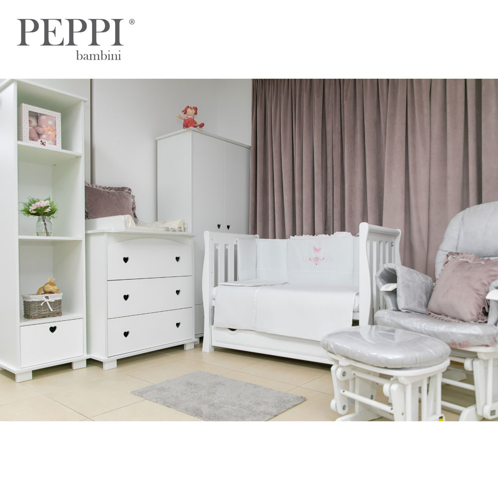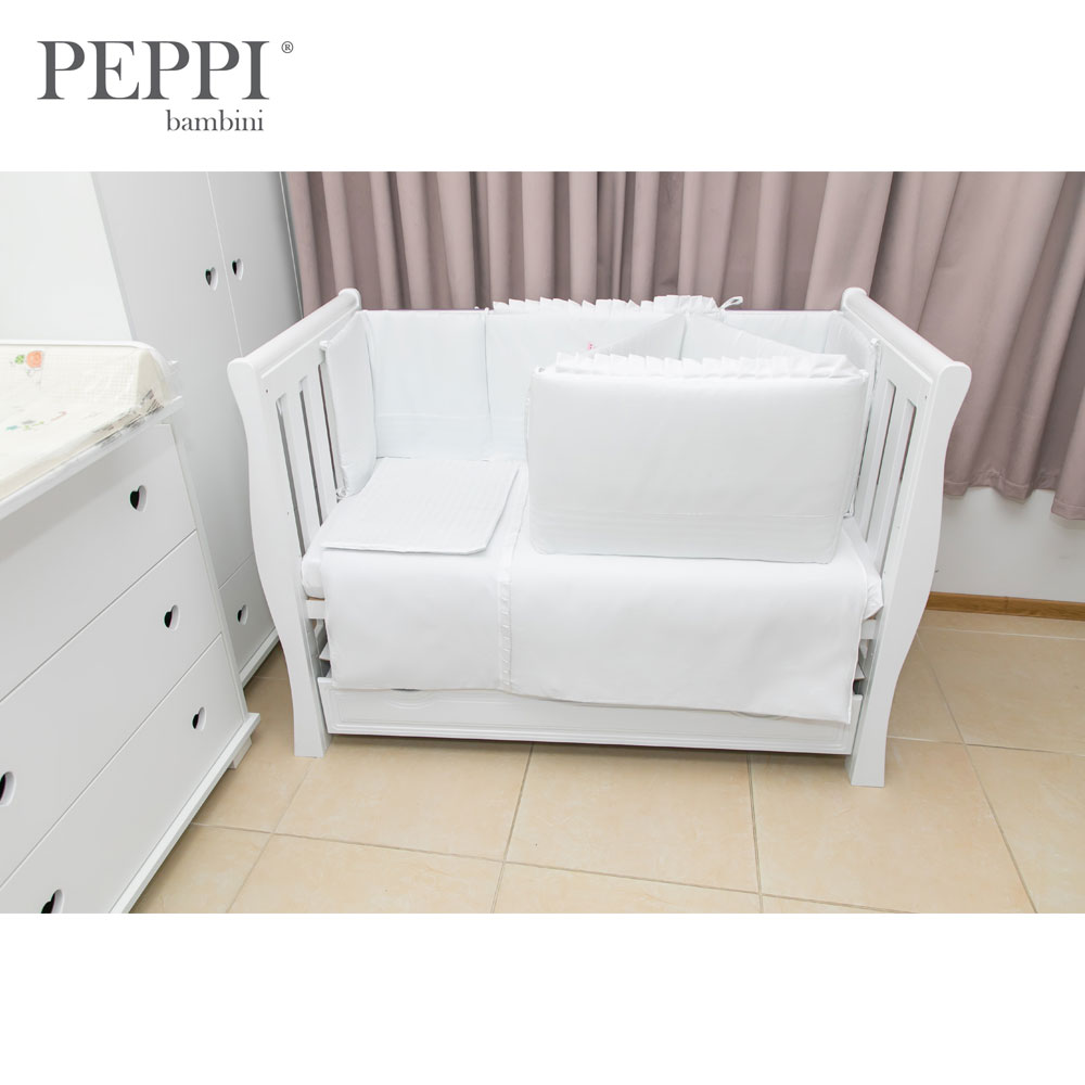 Alege delicatețea și eleganța atemporală a setului PeppiBambini Butterfly White, o lenjerie de pătuț formată din 5 piese, creată special pentru confortul și siguranța bebelușului tău 👶.