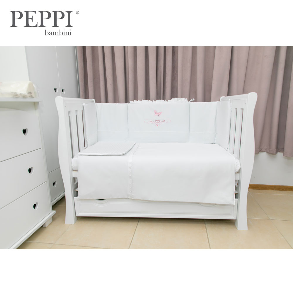 Lenjerie pătuț 5 piese cu broderie Butterfly White PeppiBambini – eleganță și rafinament pentru somnul bebelușului tău