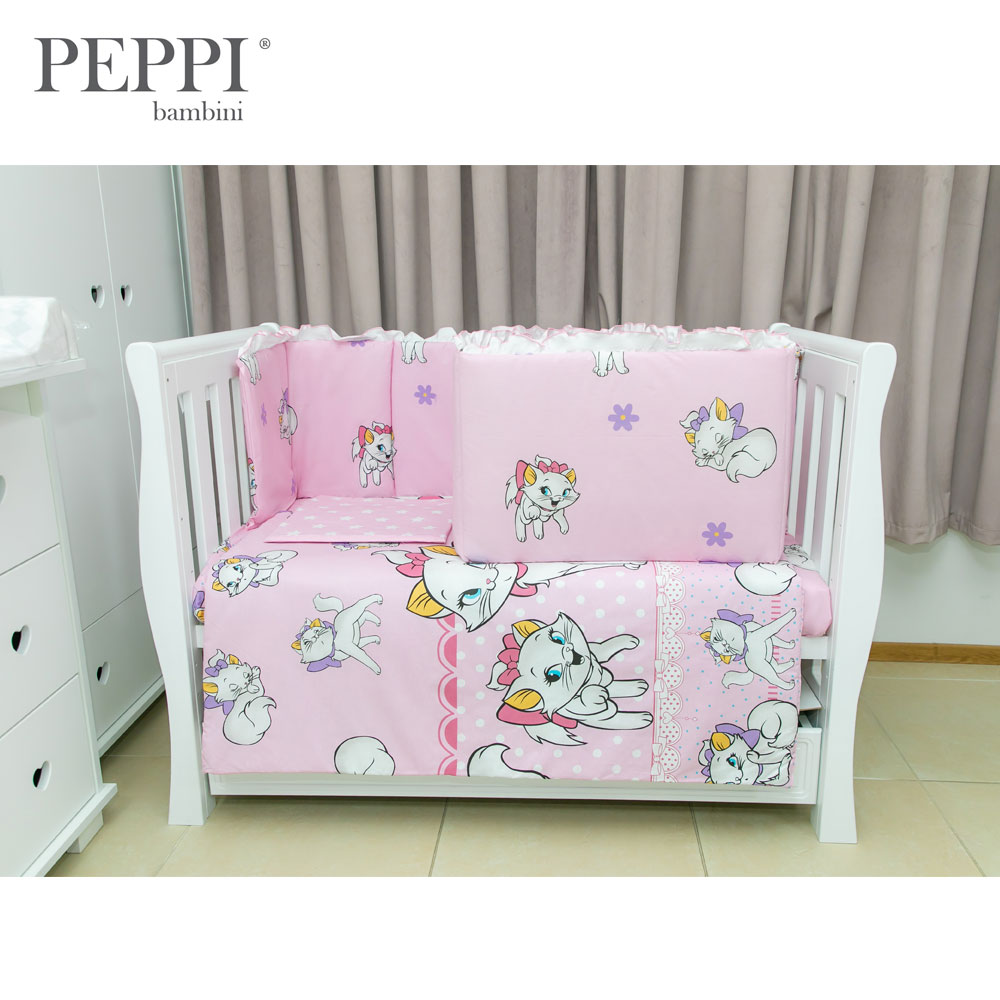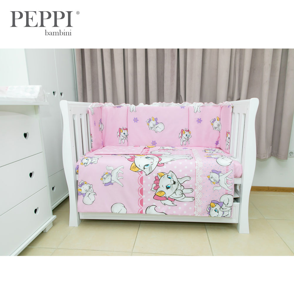 Lenjerie pătuț 5 piese Kitty Pink PeppiBambini – eleganță, gingășie și confort pentru micuța ta