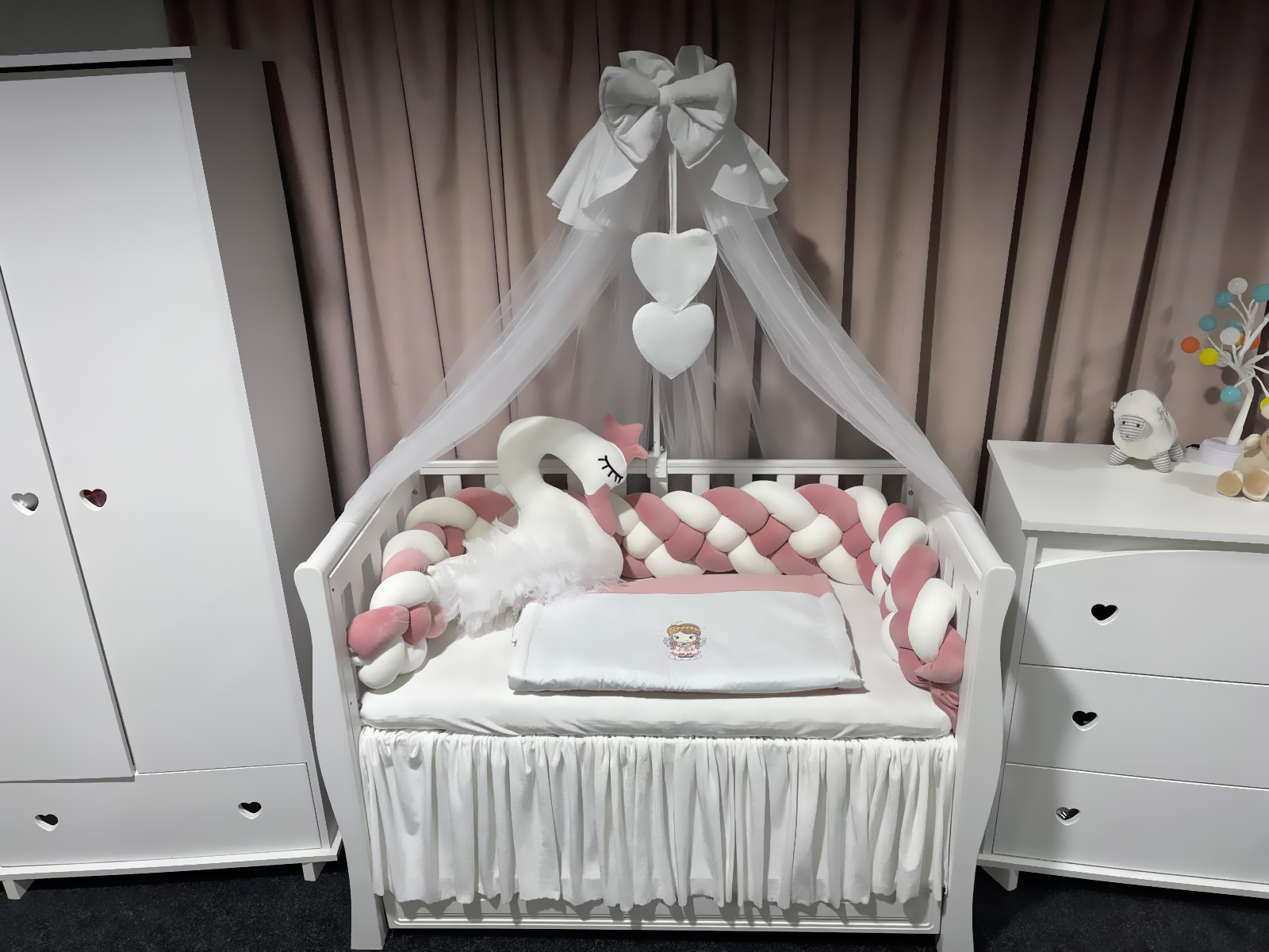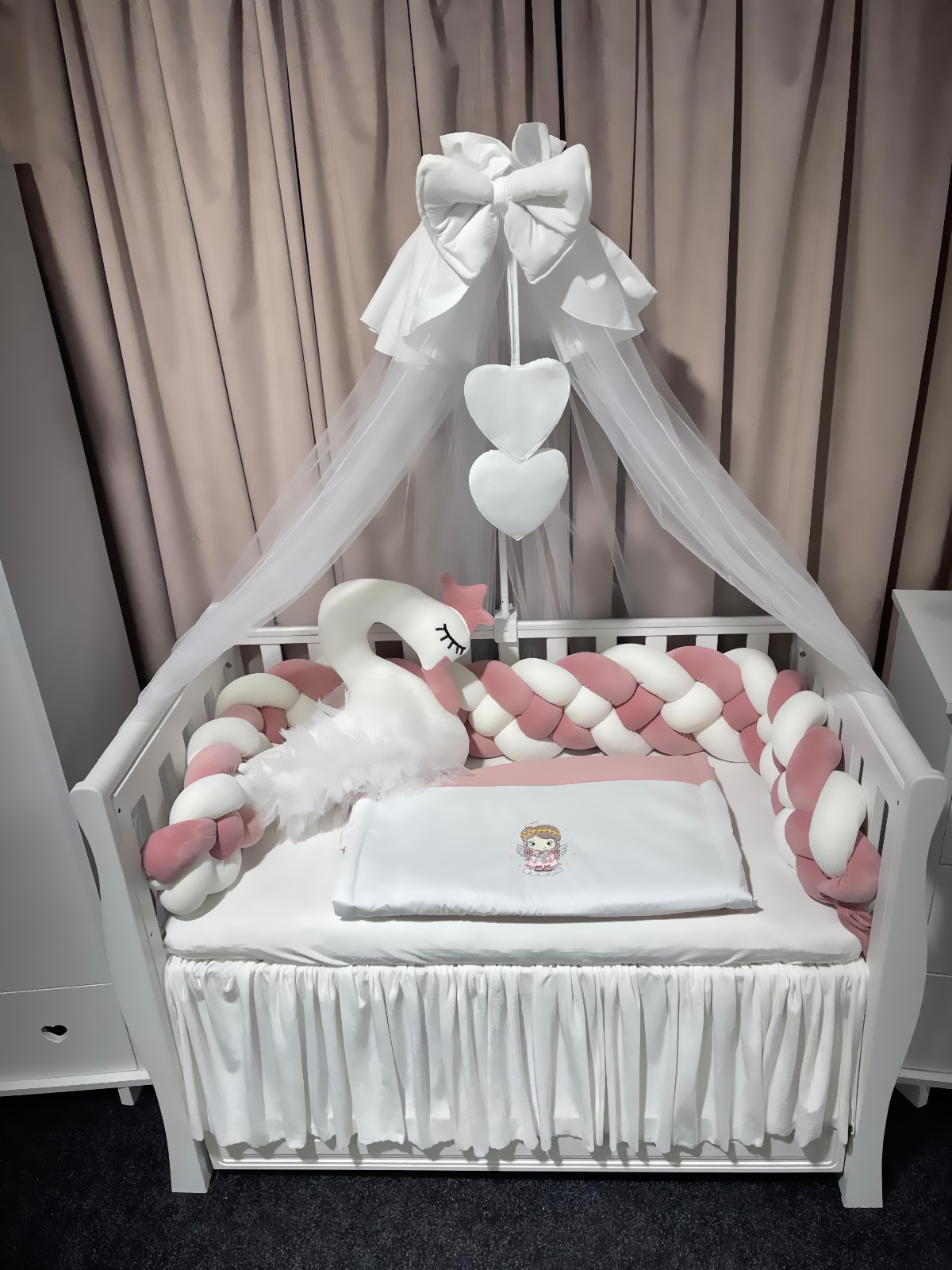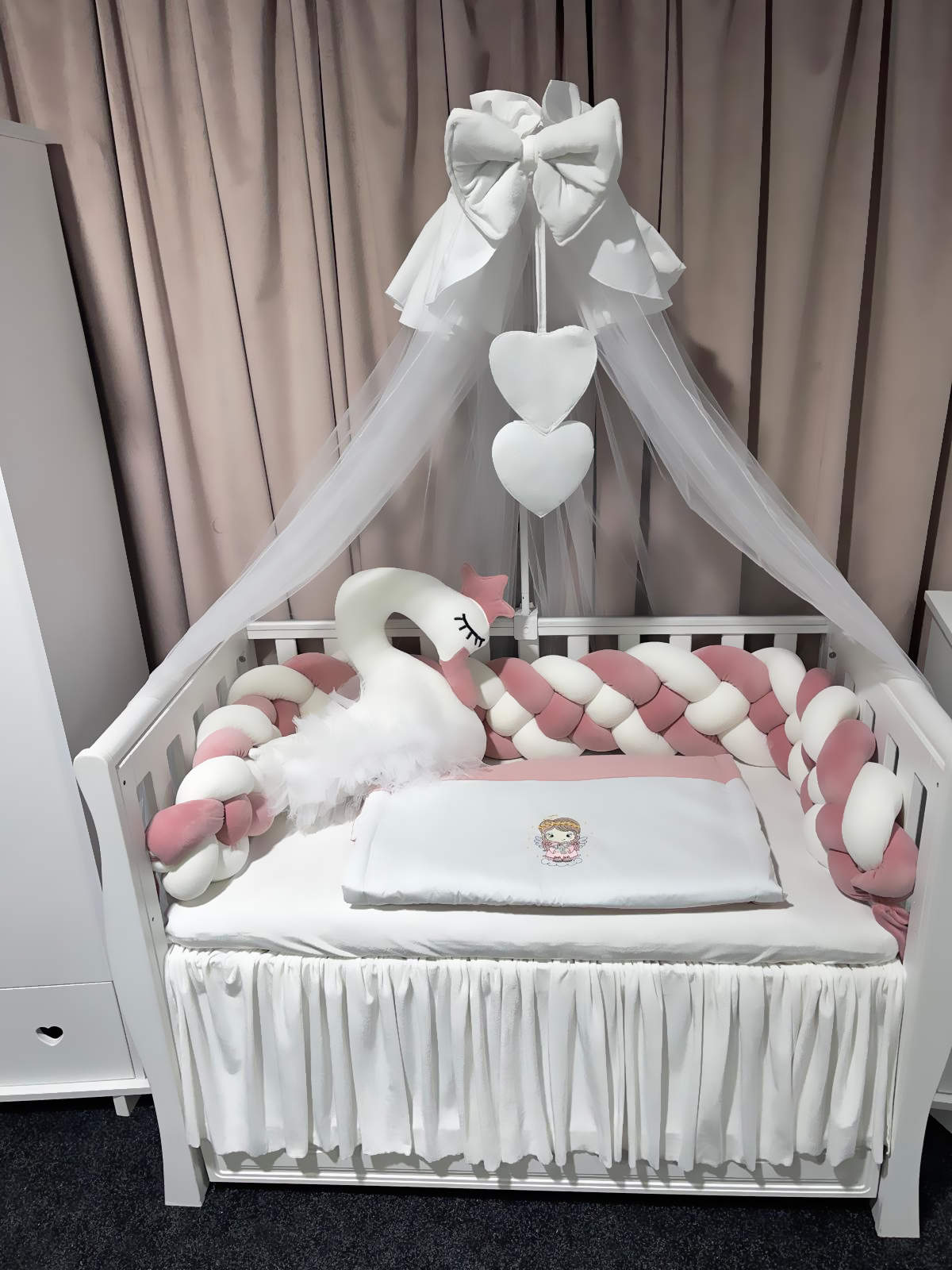 Acest set transformă pătuțul într-un spațiu calm, ferit, moale și extrem de elegant — perfect pentru o mică prințesă. 💗✨