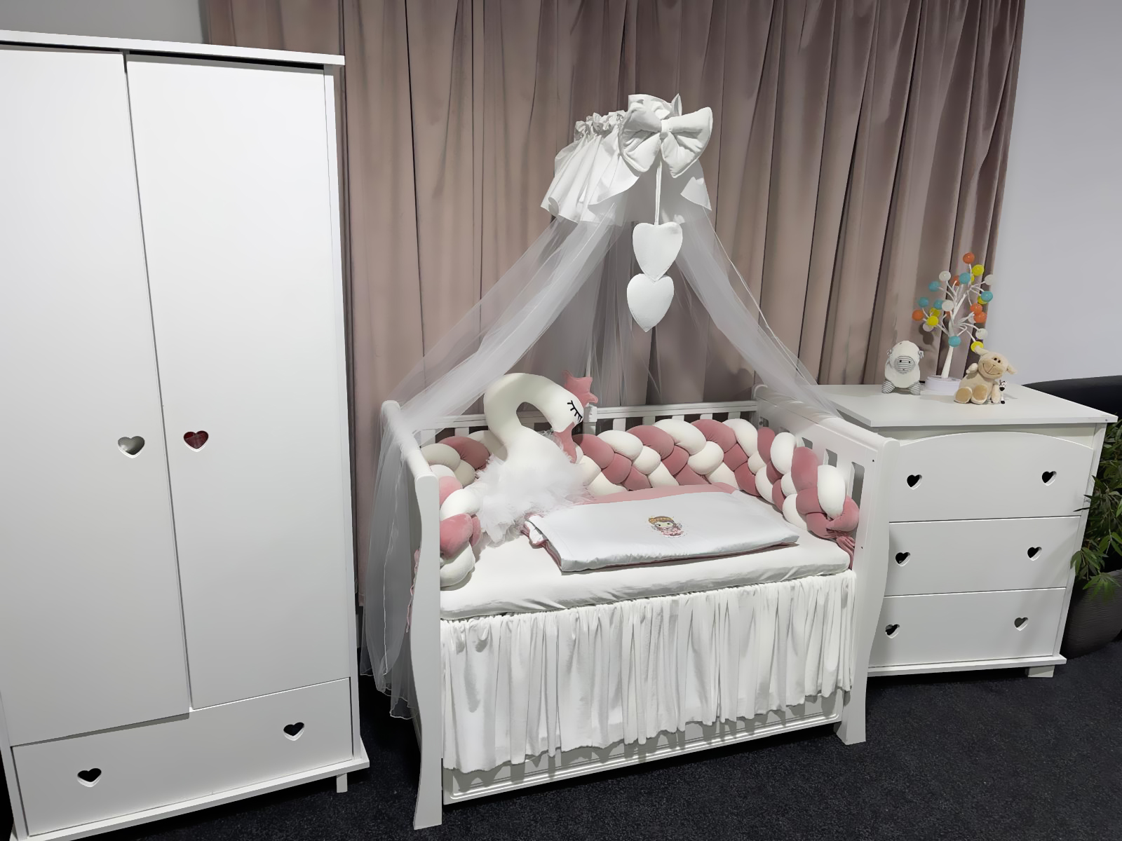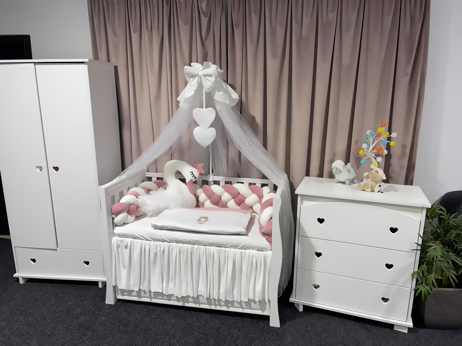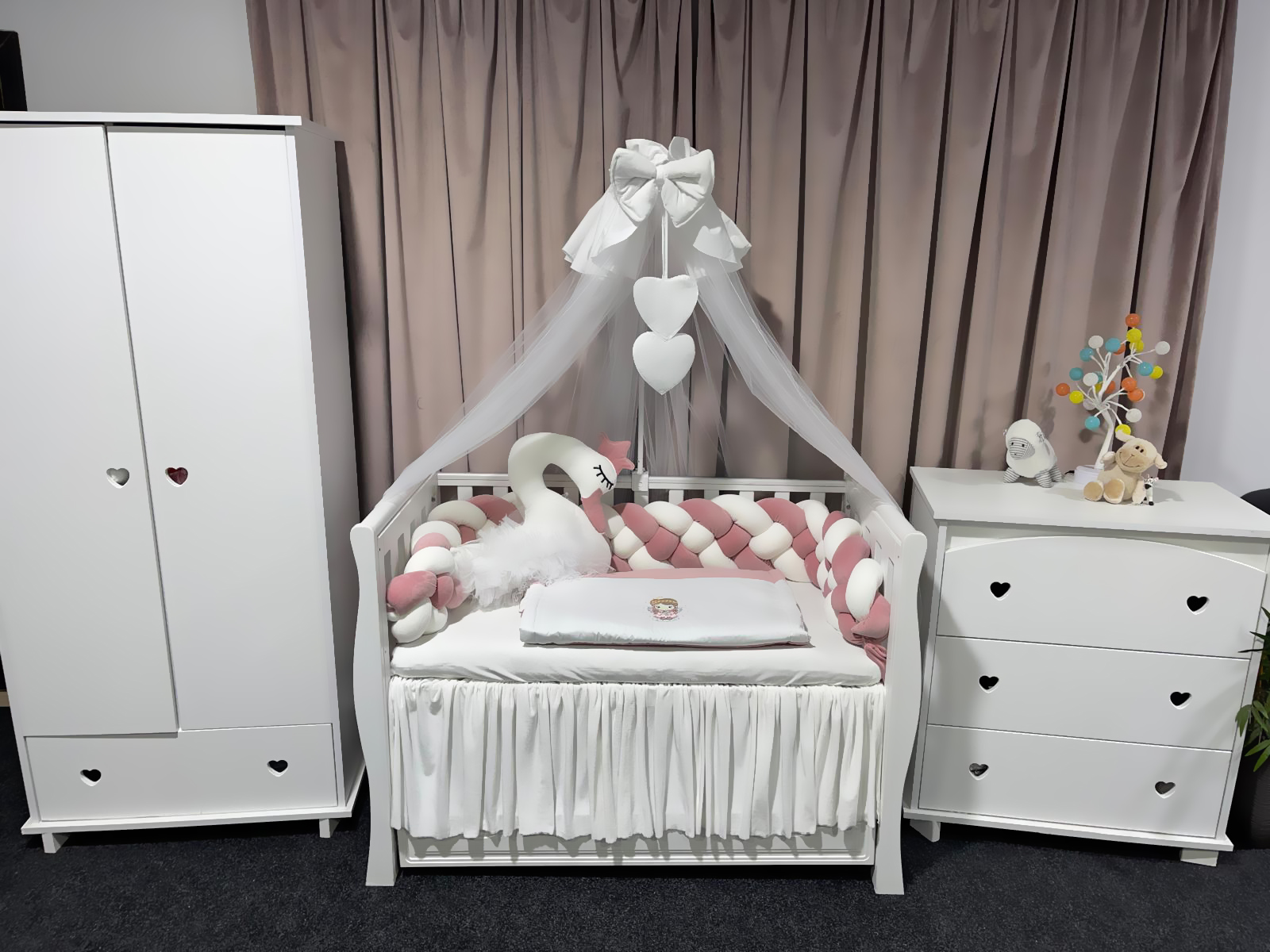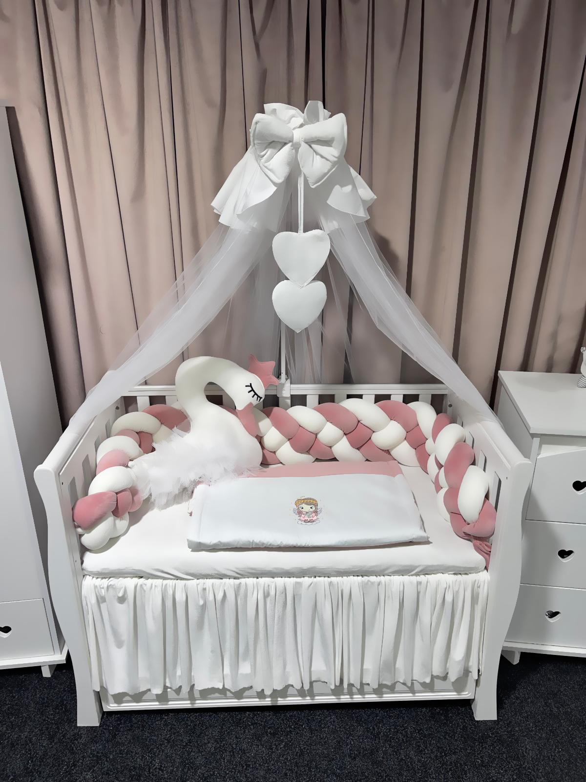 Acest set transformă pătuțul într-un spațiu calm, ferit, moale și extrem de elegant — perfect pentru o mică prințesă. 💗✨