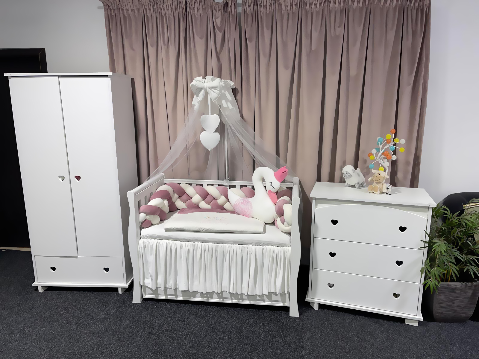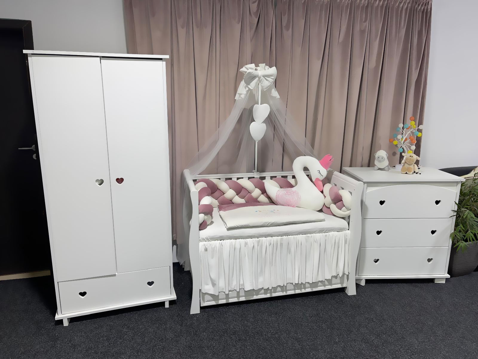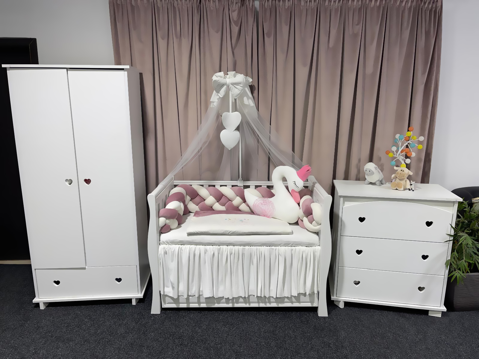 Modelul Catifea Pink este perfect pentru camere pastel, feminine, scandinave sau tematice. Rozul pastel dă o atmosferă liniștitoare și caldă, ideală pentru primele luni de viață.