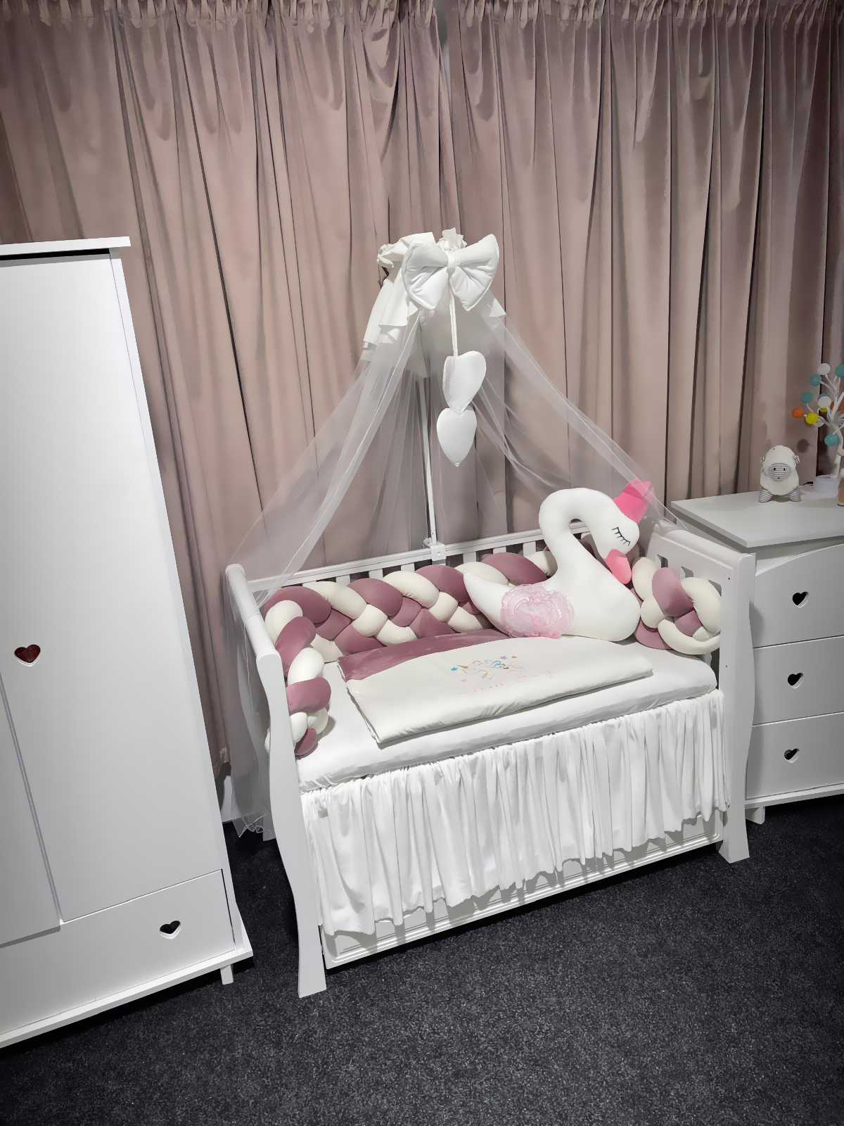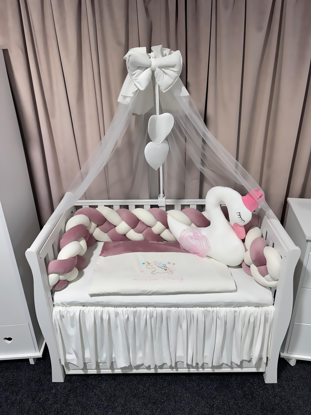 Setul Catifea Pink cu laterale împletite – PeppiBambini este alegerea ideală pentru părinții care își doresc un pătuț feminin, elegant și sigur pentru fetița lor. Nuanța de roz pastel, combinată cu catifeaua moale și lateralele împletite, creează un decor delicat, cald și modern. 💗✨