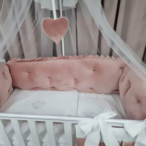 lenjerie pătuț bebeluși, lenjerie catifea roz, set pătuț 11 piese bebe, lenjerie premium fetițe, lenjerie personalizată bebe, PeppiBambini catifea pink, lenjerii antialergenice pentru bebeluși, set pătuț catifea, lenjerii pentru pătuț din catifea, seturi premium pentru bebeluși