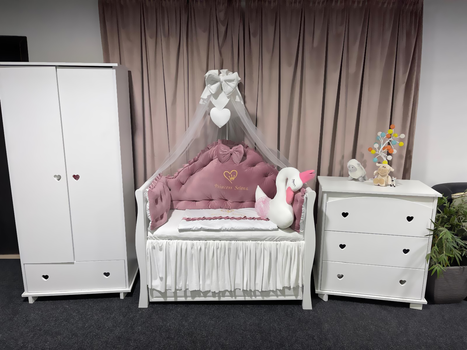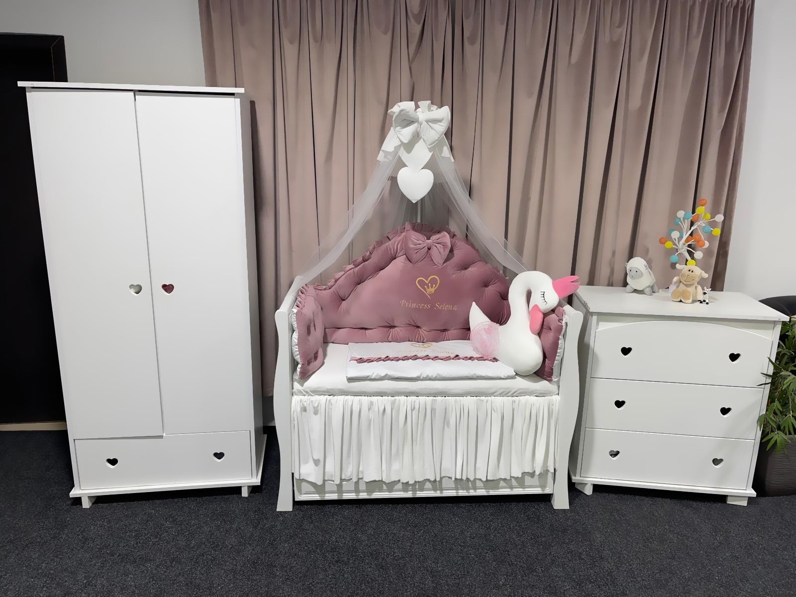 Această variantă Catifea Pink este una dintre cele mai populare alegeri pentru fetițe datorită culorii delicate și elegante. Se potrivește perfect în camere pastel, moderne sau romantice, fiind ideală și pentru fotografii newborn.