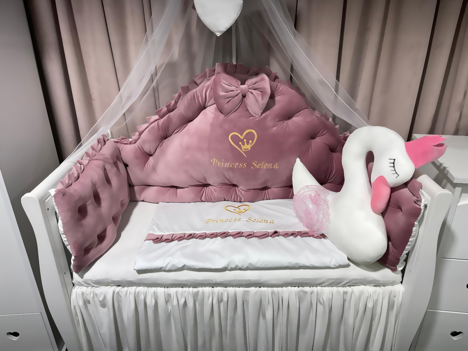 Setul Regal Catifea Pink PeppiBambini este creat pentru părinții care își doresc un pătuț elegant, feminin și delicat pentru fetița lor. Catifeaua roz pastel conferă un aspect rafinat și cald, iar broderia personalizată transformă acest set într-un element unic în camera bebelușului. 💗✨