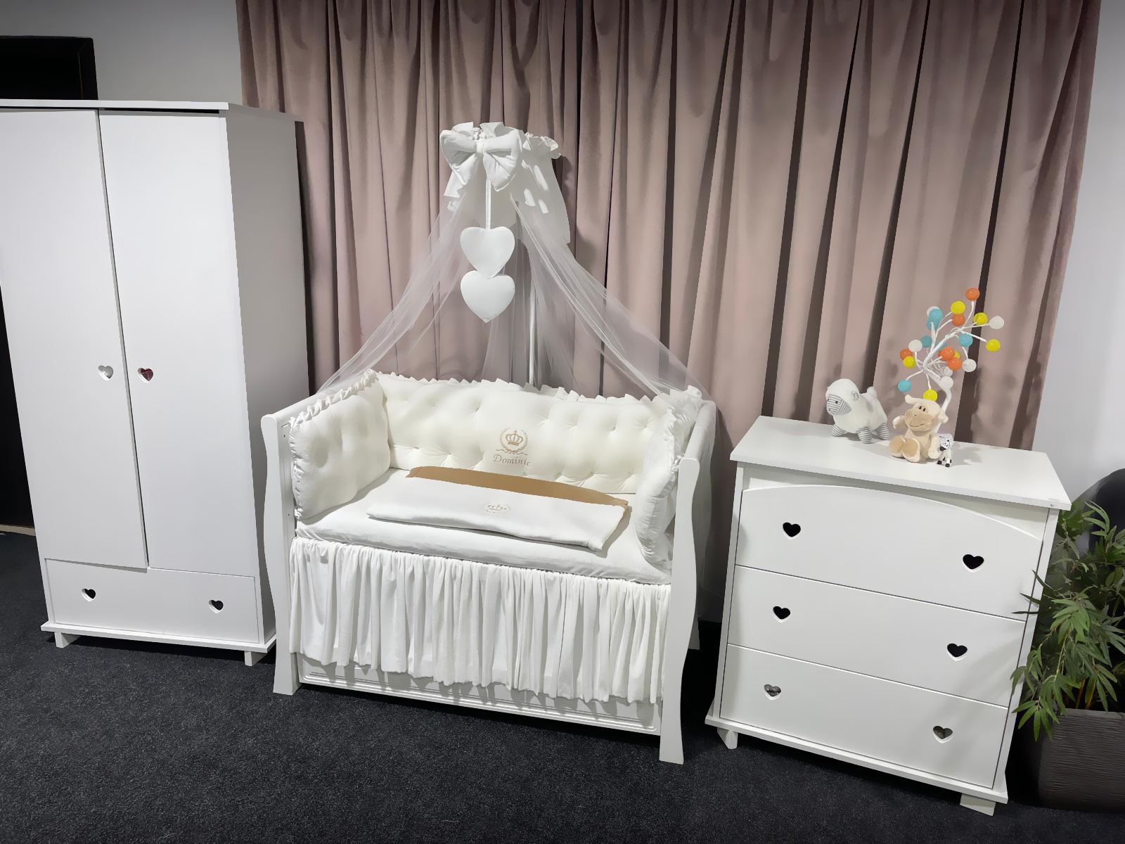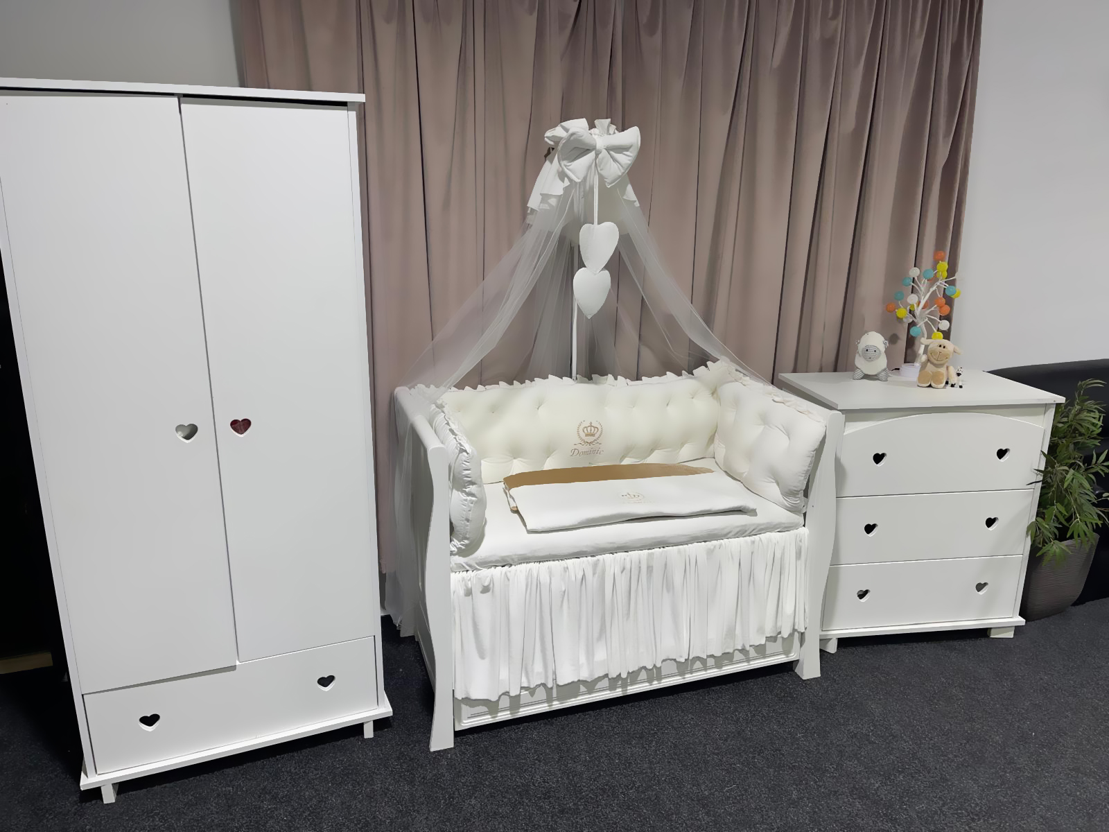 Setul Royal Catifea White PeppiBambini este alegerea perfectă pentru părinții care își doresc un pătuț elegant, luminos și cu adevărat special pentru bebelușul lor. Catifeaua albă are un aspect regal, curat și rafinat, ideal pentru camere moderne, minimaliste sau pastelate. 🤍👶✨