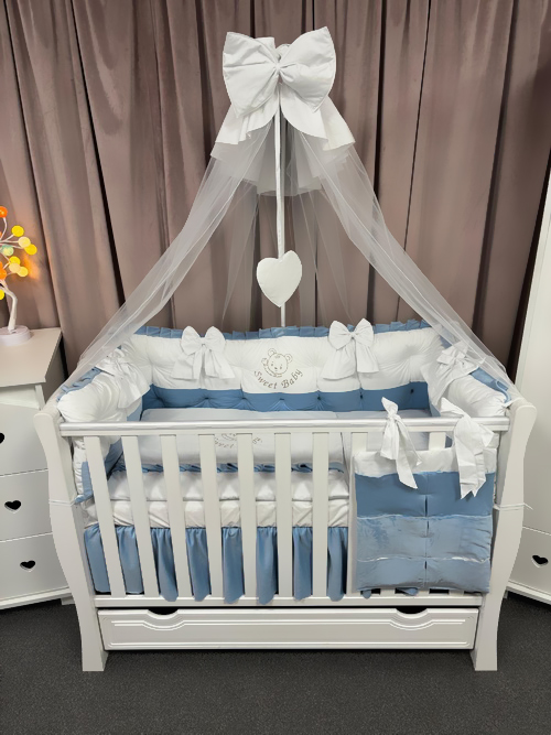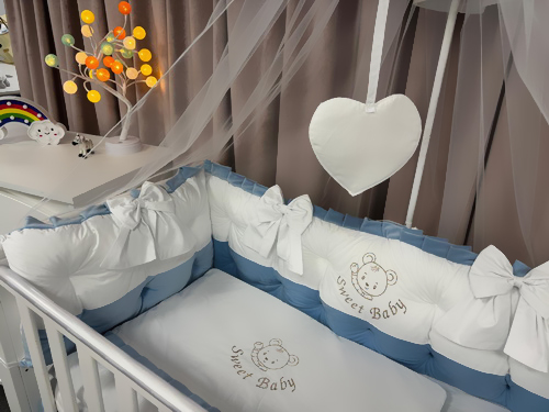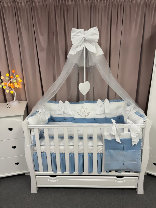Lenjerie de pătuț premium pentru bebeluși, fabricată manual în România
