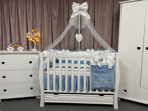 Oferă camerei bebelușului tău eleganța și confortul pe care le merită cu setul Royal Catifea Blue Peppi Bambini, o lenjerie premium pentru pătuț bebeluș realizată manual în România.