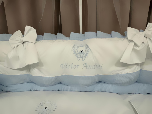 „Lenjeria e de vis! Catifeaua e moale, plăcută la atingere, iar broderia cu numele băiețelului e impecabilă. Se vede că e lucrată cu atenție.”