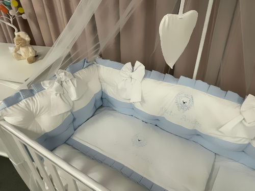 Acest set complet de 11 piese aduce un plus de eleganță, protecție și căldură camerei bebelușului, fiind perfect pentru părinții care caută lenjerii pentru bebeluși de calitate superioară.