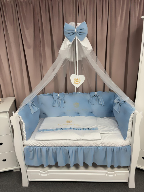 Culoarea albastru regal, clasică și calmantă, aduce o notă de eleganță camerei bebelușului, fiind ideală pentru părinții care caută lenjerii pentru bebeluși de calitate premium.