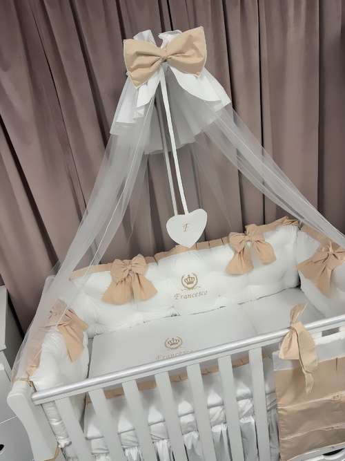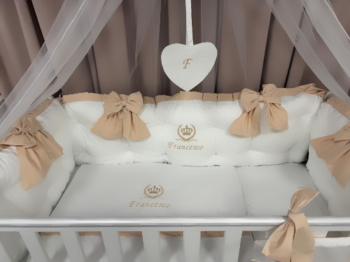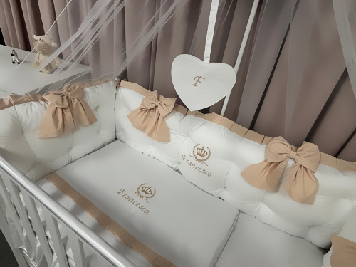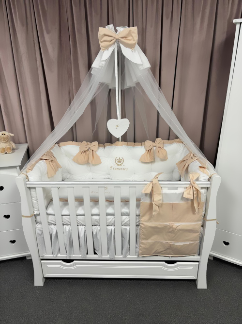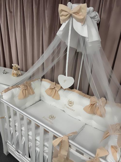 Protecție laterală completă (5 bucăți independente cu fundițe bej)