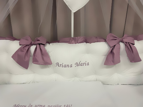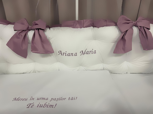 „Foarte frumoasă și fină. Se simte luxul materialului, iar broderia cu numele fetiței e un detaliu special. Pătuțul arată ca în reviste.”