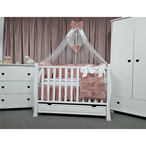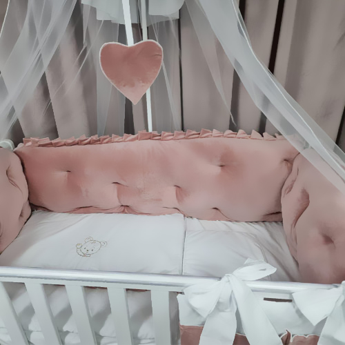 Fiecare detaliu – de la fundițele delicate până la broderia personalizată cu numele copilului – este gândit cu pasiune și precizie, pentru ca pătuțul să devină centrul camerei bebelușului tău.