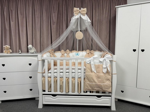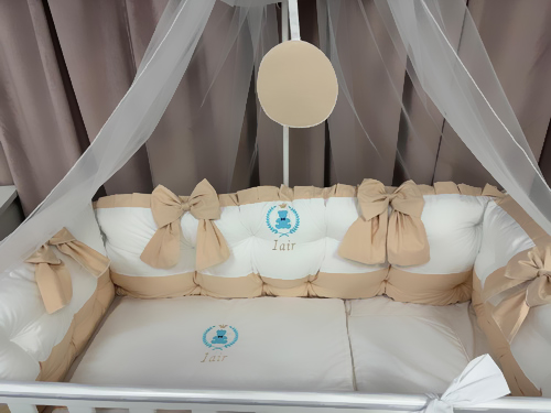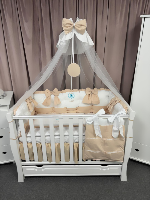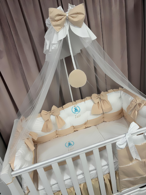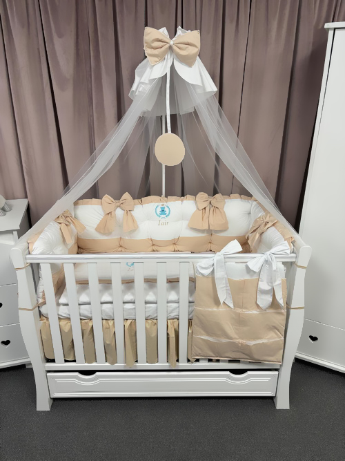 Protecție laterală completă (5 bucăți independente cu fundițe bej)