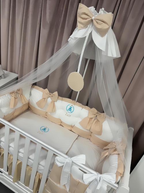 Este o lenjerie pentru pătuț bebeluș completă, sigură și elegantă, creată special pentru primele luni de viață ale copilului.