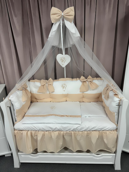 Protecție laterală completă (5 piese independente cu fundițe bej)