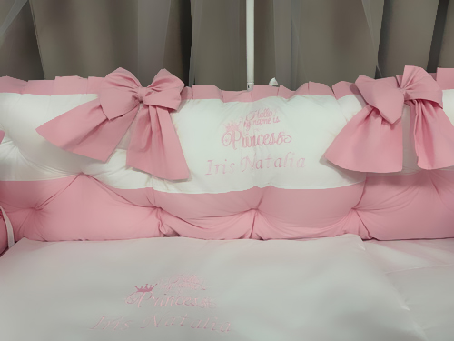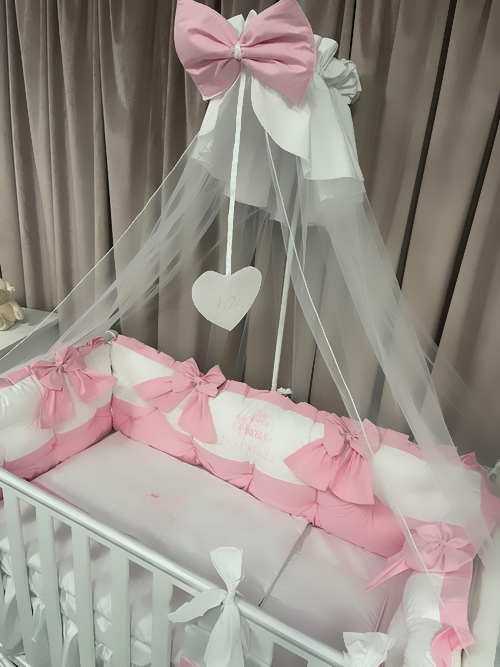 Modelul Royal White Pink este dedicat părinților care doresc o lenjerie elegantă, feminină și confortabilă pentru micuța lor.