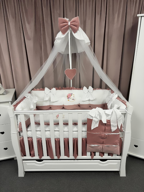 Setul complet de 11 piese premium este conceput pentru a oferi confort, protecție și rafinament bebelușului tău încă din primele luni de viață.