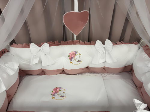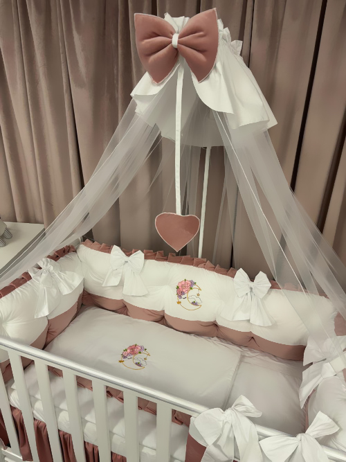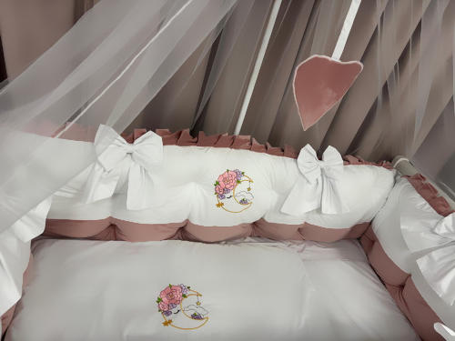 „Calitate premium! Totul e cusut impecabil, catifeaua e moale, iar fundițele roz oferă un aspect adorabil. Pătuțul arată ca într-o cameră de poveste.”