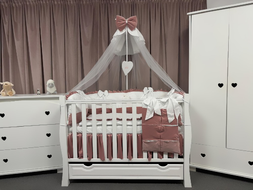 Modelul Royal White Pink este alegerea perfectă pentru părinții care vor să ofere un plus de rafinament camerei bebelușului.