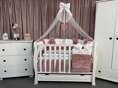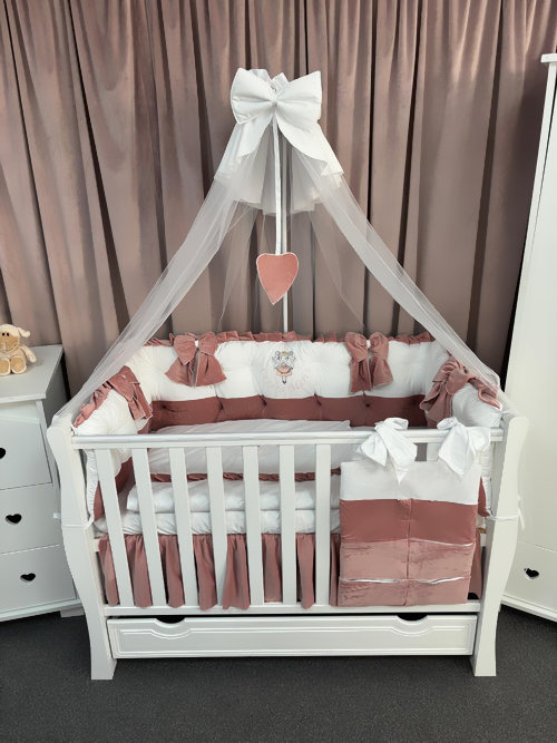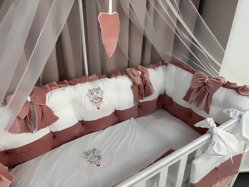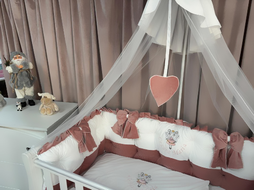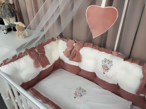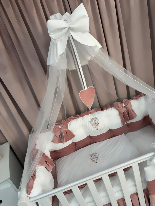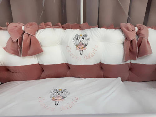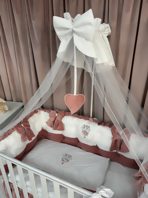 Fiecare piesă este cusută manual cu atenție, pentru ca pătuțul micuței tale să fie nu doar frumos, ci și sigur și confortabil.