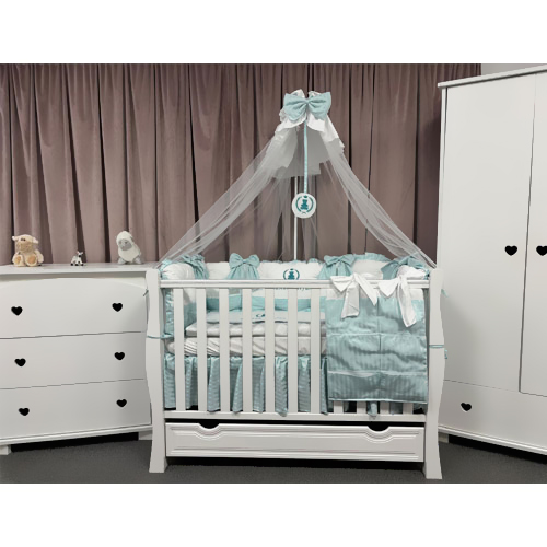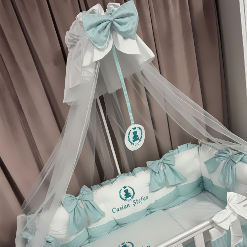 Creează o atmosferă de poveste în camera bebelușului tău cu setul Royal White Mint Casian, semnat PeppiBambini – un brand românesc cunoscut pentru calitatea premium și atenția la detalii.